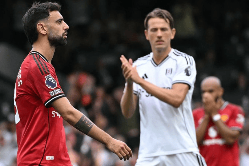 上半场进行到第37分钟时,主裁判突然叫停比赛,回看VAR后认定富勒姆球员禁区内抱摔芒特,果断给了曼联一粒点球,B费准备主罚点球时,不慎和裁判撞了一下,这件小事让B费直接摊手向主裁判表达不满,情绪也影响了他的发挥,主罚的点球不着边际,直接飞出了底线,错失打破僵局的绝佳机会。